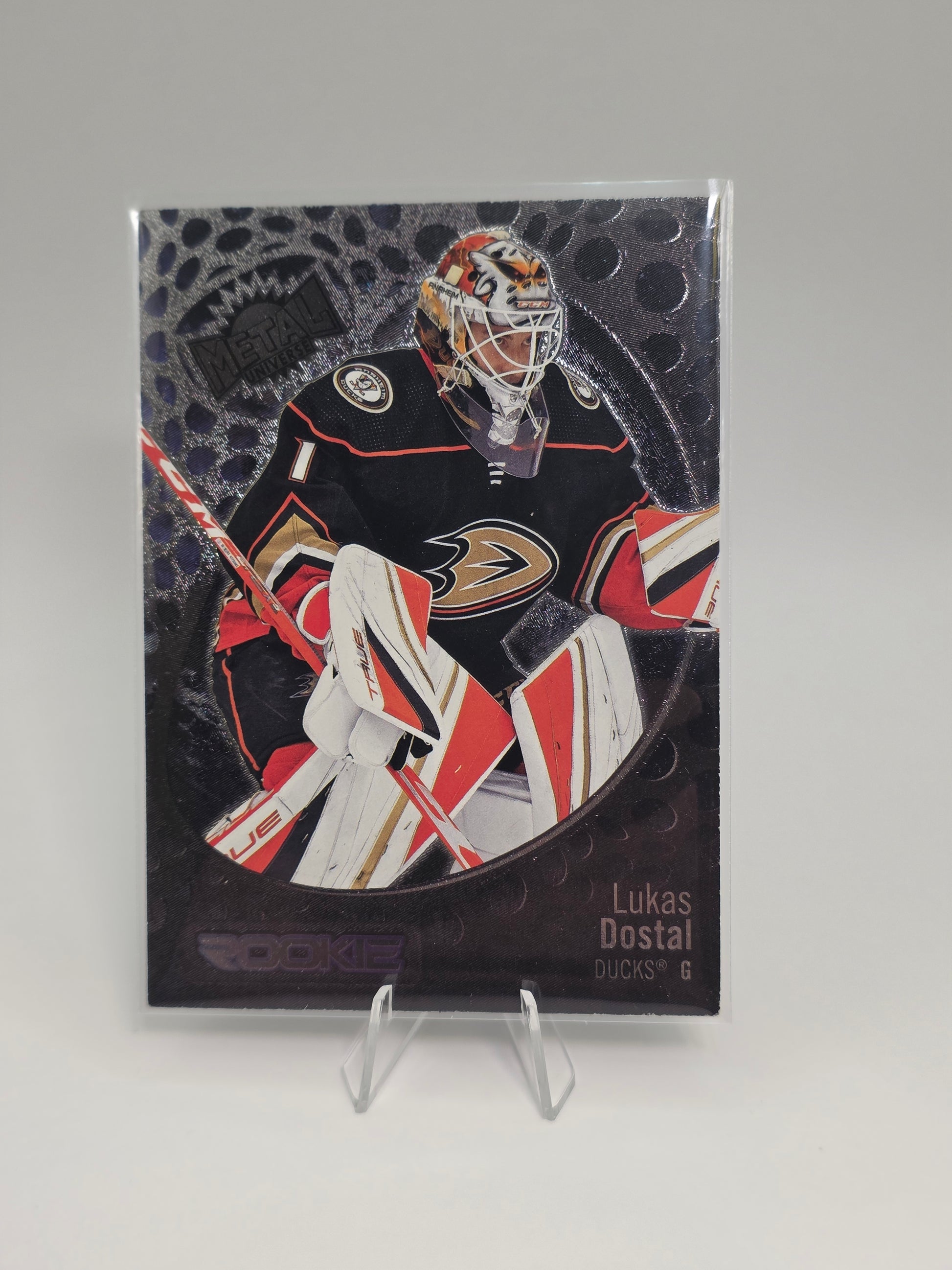 Metal Universe rookie insert featuring Lukas Dostal with the line’s signature metallic finish.
