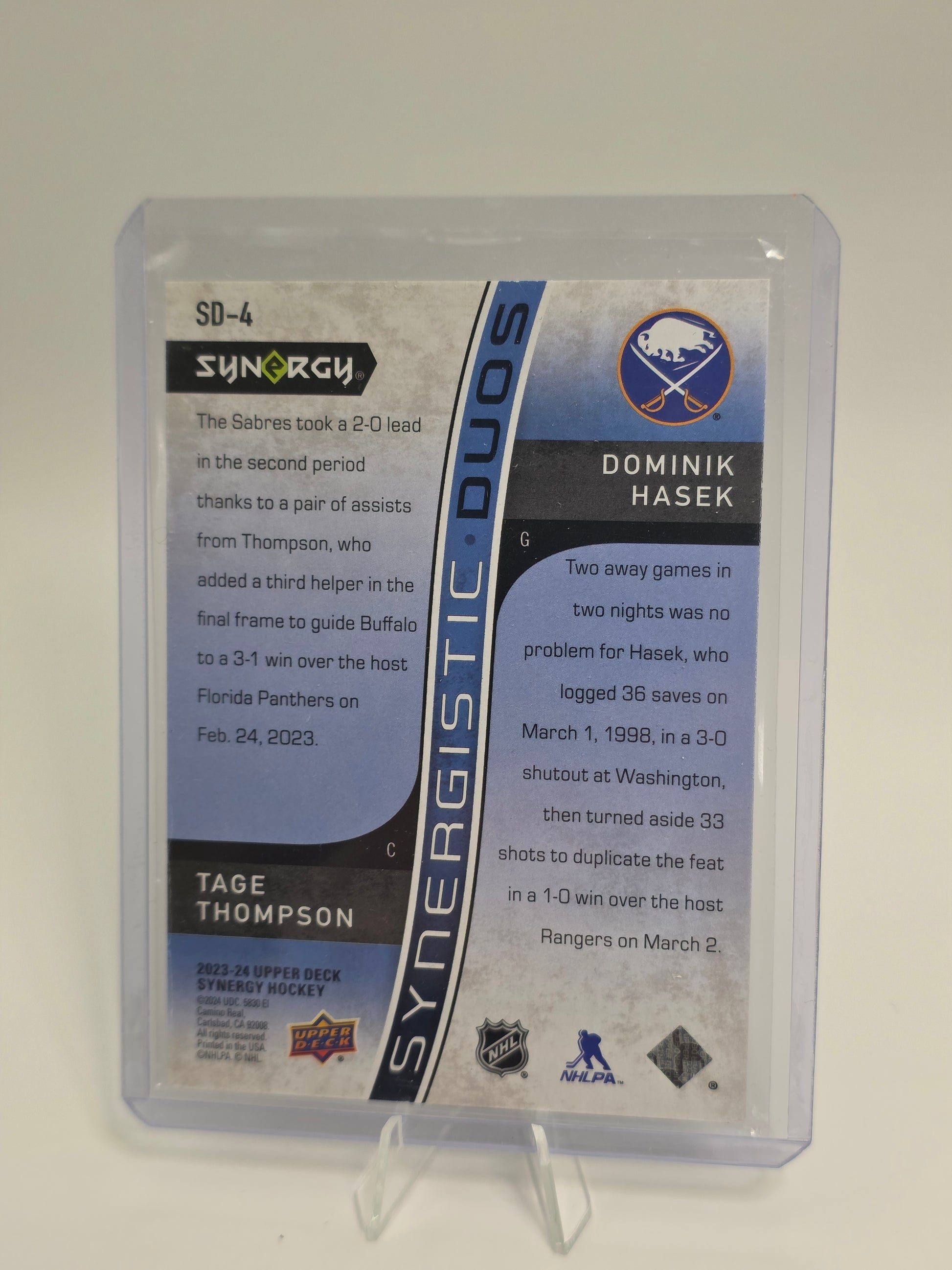 2023β24 Upper Deck Synergy β Synergistic Duos SD-4 (052/599) β Tage Thompson & Dominik Hasek