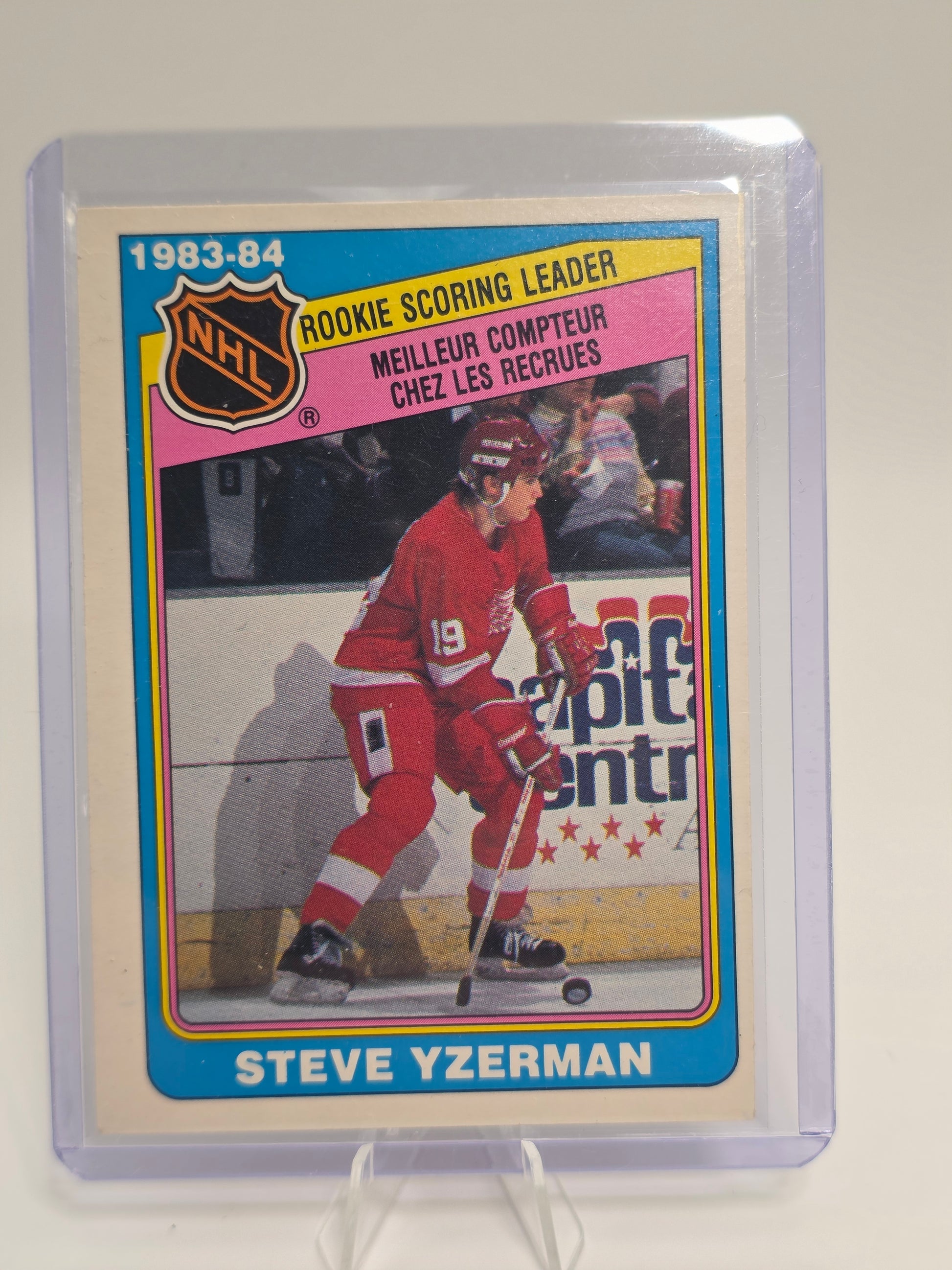 π₯π Own a piece of hockey history β Yzerman rookie glory! This classic O-Pee-Chee Rookie Scoring Leaders card features a young Steve Yzerman with iconic 80s styling β bold borders, timeless print, and instant shelf prestige. Perfect for fans who want a genuine vintage centerpiece that looks great framed or in a top-loader. Whether youβre starting a Hall-of-Famer wall or adding a standout to your set, this Yzerman delivers nostalgia + presence. β‘οΈ Add a mystery pack or single pack for an extra surprise at checkout! π