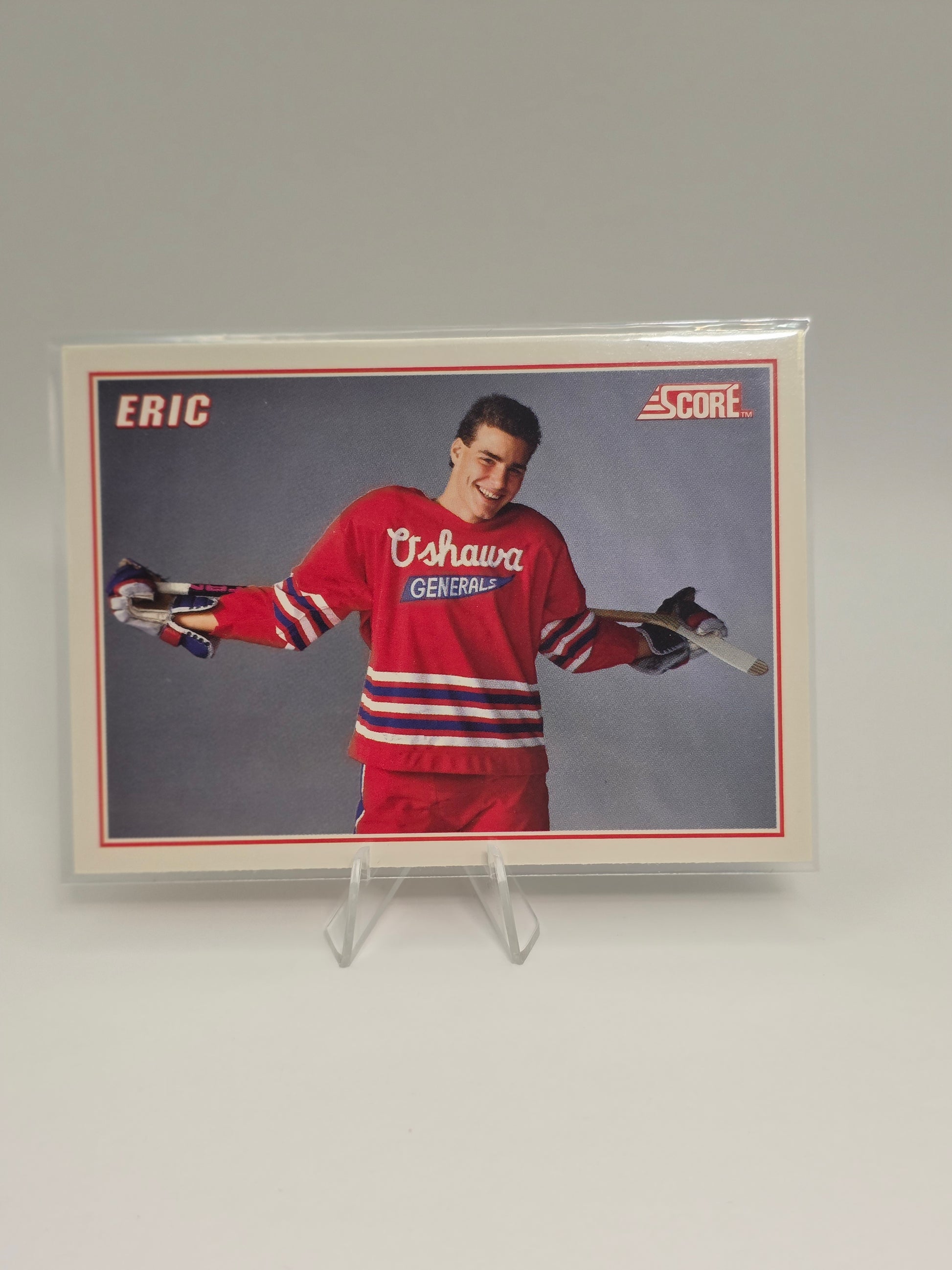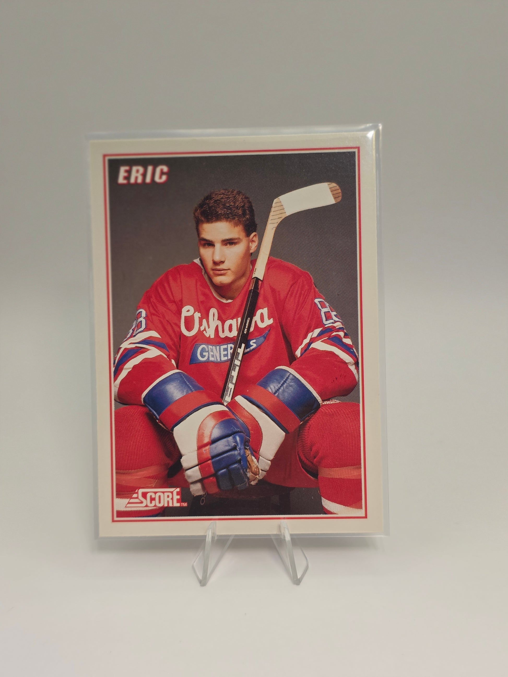 Own a piece of hockey history with this complete 5-card set of Eric Lindros in his junior gear. Issued by Score in 1990 as bonus prospect cards, these feature the “Big E” before he hit the NHL spotlight. Cards are in good ungraded condition and make a great addition for collectors of 90s hockey or Lindros fans.