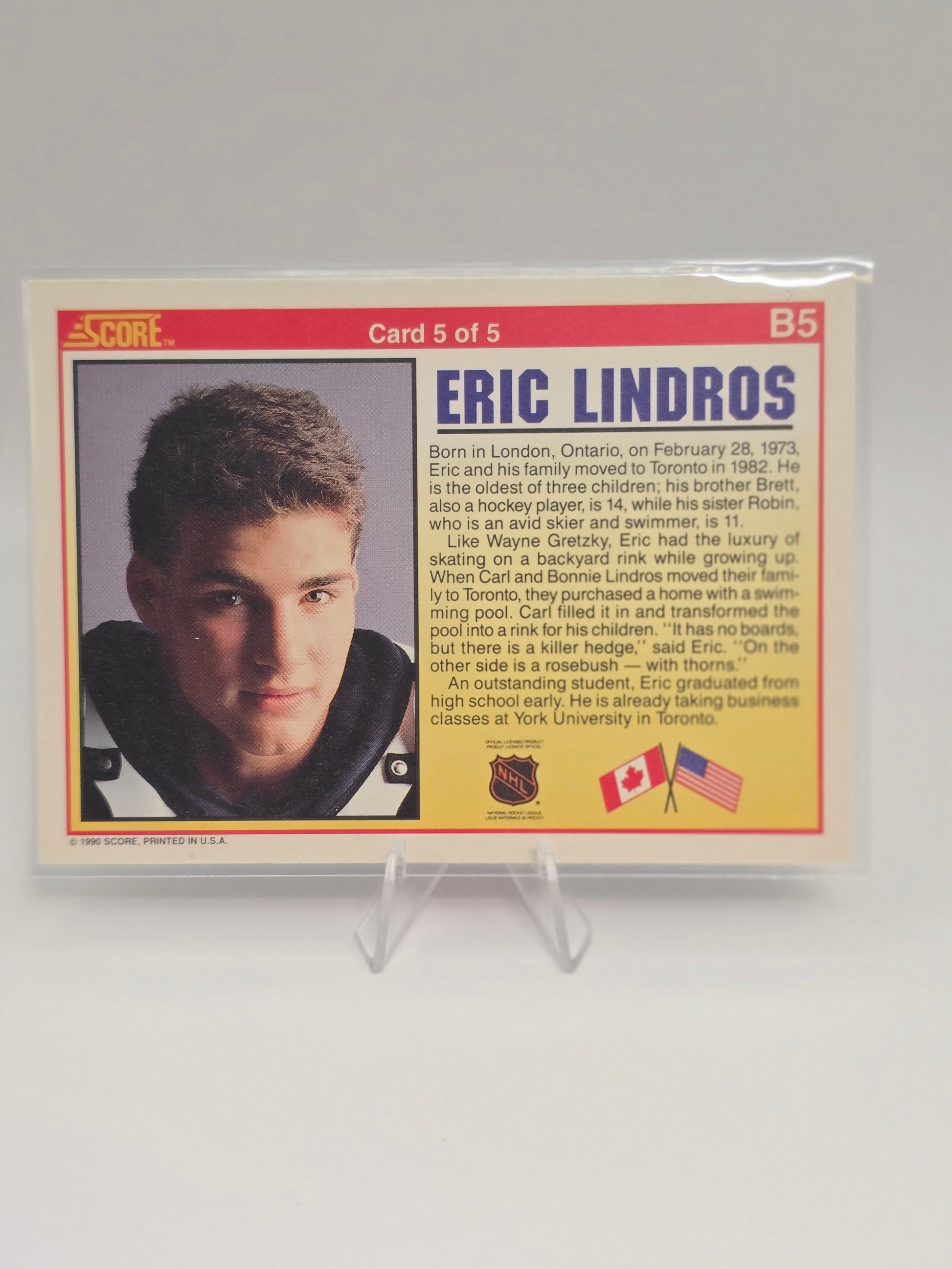 1990 Score Eric Lindros 5-Card Prospect Set (B1–B5)